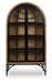 Store in style with this accent cabinet. Dressed in versatile natural brown and black finishes, it seamlessly suits spaces from casual to modern. An arched profile elevates the look and feel. Whether it's used to display your favorite dishware or as a handsome makeshift pantry in small spaces, this cabinet makes a chic impression.