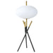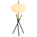 This table lamp offers a striking modern design with its unique tripod base and frosted globe-shaped shade. Crafted with a combination of sleek black and gold metal finishes, the lamp exudes elegance and contemporary charm. The frosted plastic shade provides soft, diffused lighting, making it suitable for a variety of settings. Sturdy and functional, this lamp is an ideal addition for those seeking a blend of aesthetic appeal and reliable illumination.