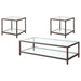 This modern coffee table set features a black nickel electroplated steel frame paired with clear tempered glass surfaces. Designed for versatility and style, the set offers spacious tabletops and lower shelves for display and storage. The minimalist open-frame design emphasizes clean lines and a contemporary aesthetic, making it a perfect addition to various living room styles. Durable tempered glass ensures lasting use while maintaining a sleek, elegant appearance. Key Features: • Coffee table set with tempered glass tops and lower shelves • Black nickel electroplated steel frames create a sleek modern finish • Spacious surfaces provide versatile storage and display options • Clear tempered glass enhances durability and safety in daily use • Open-frame design highlights a minimalist and airy aesthetic • Complements a variety of modern and transitional living spaces