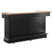 - Top with butcher block veneer pattern in deep brown wood-tone finish