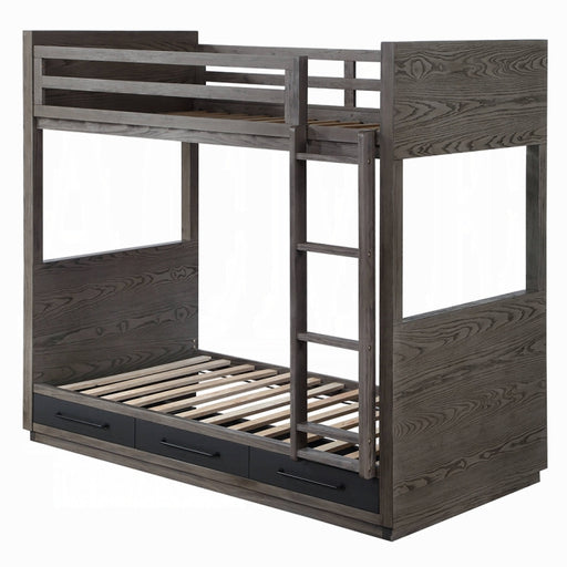 Sleep safe and sound—in style. You’ll rest easy thanks to the top bunk’s guardrails, and they’ll love the "cool factor" of the industrial/contempor...