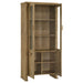 Elevate your dining room with this tall sideboard that exudes contemporary flair, finished in pearly almond. Showcasing tempered glass framed doors and adjustable shelves, it offers a streamlined solution for tableware storage or displaying glassware. Below, two enclosed doors house a fixed center divider and additional adjustable shelves. Crafted from oak veneer, Asian hardwood, and engineered wood, this buffet seamlessly blends style, functionality, and durability.