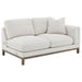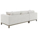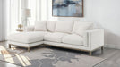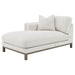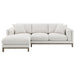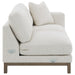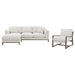 Indulge in the inviting comfort of this modern sectional sofa, thoughtfully designed with a left side chaise to accommodate your personal lounging preferences. Upholstered in a soft, textured bouclé fabric, complemented with a solid wood pedestal base in ash brown, creating the perfect stylish seating foundation. Fulling encased engineered wood frame, sinuous spring seating and foam combined with premium blend fill create a plush, resilient feel. Complete with reversible back cushions, reversible single cushions, removeable chaise cushion and coordinating accent pillows, this sectional becomes the stylish focal point of a welcoming, contemporary living room.