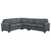 Ensure stylish seating for the whole family with a modern L-shaped sectional sofa. In beige for a warm, neutral presence, the sofa boasts tufted cushions and accent pillows that crate depth and dimension in an inviting living room. Back cushions are reversible for added versatility, while seat cushions are attached to ensure they stay in place when lounging or entertaining. Track arms establish a structured, simple silhouette, perfect for a wide variety of spaces and surrounding decor. Block feet taper to add the perfect finishing touch.