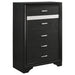 Sparkling diamond-like trim ups the glamour for a five-piece modern bedroom set. Compelling in its elegant simplicity, it centers on an upholstered...