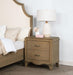 This French Provincial-inspired nightstand blends classic elegance with modern convenience. Crafted from solid poplar, engineered wood, and mango veneer, it showcases a washed mango finish that highlights the natural wood grain. Two spacious drawers provide ample bedside storage, accented with sleek metal handles. Designed for today’s needs, it offers built-in charging capabilities, ensuring effortless functionality while maintaining its timeless charm.