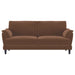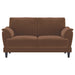 Unwind in style with this chic retro-inspired sofa and loveseat set, designed for ultimate comfort and timeless appeal. Upholstered in a rich rust woven fabric, both pieces feature plush foam seat cushions and curved tufted arms that combine elegance with support. The fully encased engineered wood frame provides long-lasting stability, while sinuous spring seating ensures durable comfort. Solid wood tapered legs in an espresso finish add a sleek, sturdy foundation, making this set a versatile centerpiece for any living space.