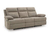 Fully upright or completely stretched out, this traditional-inspired reclining sofa caters to the art of relaxation. Super soft charcoal-colored upholstery and sumptuous cushioning—made all the more indulgent with pillow top arms—cradles you in comfort from head to toe. A middle seat with a drop-down table, cup holders and USB charging takes comfort and convenience to another level.