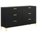 View full detailsComplete your primary suite with this modern glam bedroom set, designed with a foam padded bed upholstered in soft, black velvet for extra comfort....