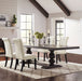 An exceptional dining set is inspired by European decor for a gorgeous dining space. The expansive rectangular tabletop is supported by a dual pede...