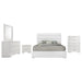 View full detailsUpgrade your bedroom with this ultra-modern platform bed and matching case pieces. The bed features a sleek white faux leather upholstery with hori...