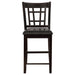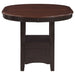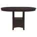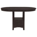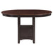 Stylish and sophisticated, this five-piece dining set is perfect for small spaces. Warm up a neutral room with the warmth of rich cappuccino hues. Fold down the leaf to welcome more family and friends. Store dinnerware in the built-in storage unit on the base of the counter height table to accommodate guests easily. The smooth legs of the table and four stools invite an open feel into a modern entertainment room.