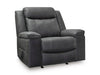 Indulge in larger-than-life style with this recliner. Intentionally crafted to provide extra support, its generously sized seat and high back invite you to sit back and settle in. When you’re ready to recline, a smooth one-pull motion puts you in the comfort zone. And your luxurious lounging experience is made complete with soft faux leather in a richly neutral contemporary hue.