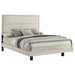 This contemporary bed is the perfect fusion of style and comfort, designed to bring a cool, modern vibe to any bedroom. With its unique "floating" effect, it creates a sense of spaciousness and sophistication. The headboard is upholstered in a soft, cream bouclé fabric, adding a touch of texture and warmth that complements the bed's rustic cream finish. Crafted from asian hardwood and engineered wood with a rough-sawn, white-washed engineered paper veneer, this bed showcases a Yin & Yang contrast between rustic and refined design elements.