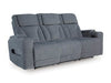 Chill-out time has never looked better. This power reclining sofa's adjustable headrest ensures a perfect view of the TV no matter how far back you recline, while the extended ottoman takes your comfort to the next level. A drop-down table is decked out with reading lights and charging features. Plush yet practical Next-Gen Nuvella™ performance fabric and ambient lighting complete the theater-style experience. It's time to relax, nap or binge-watch in the best seats in the house.