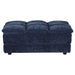 This elegant tufted ottoman is a versatile addition to your living space, offering both style and function. Upholstered in soft blue corduroy fabric with a pillow top grid-tufted design, it provides a pillow top comfortable surface for resting your feet, extra seating, or even as a stylish centerpiece. The solid and engineered wood construction ensures lasting durability, making it a reliable and functional piece for everyday use.