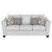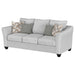 View full detailsInviting gray mist upholstery creates a rich, refined look and feel for a modern sofa. Plush cushions are filled with foam for excellent comfort. A...