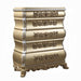 • Intricately hollow carved design with romantic scrolling accent highlights this extraordinary style. The Seville Bedroom Collection creates opulence and drama in your room with the dazzling gold hue that enhances its detailed extravagance. Button tufted headboard and footboard add depth and a luxurious sense of comfort. Matching casegoods offer self-closing drawers with built-in safety stops and felt-lining. Show your confidence and make a bold statement in your personal space with the Seville Bedroom Collection.