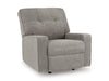 Sincere in its styling, this recliner marries classic function with modern design elements for truly transitional appeal. Its track arms lend a contemporary vibe, while easy pull tab reclining ups the comfort level. And with the recliner's goes-with-anything neutral upholstery, styling is made simple. All that’s left for you to do is sit back and relax.