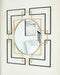 This accent mirror brings a layer of contemporary flair to traditional art deco motifs. Its frame, in a geometric design emphasized by black and goldtone finishes, makes a strong sculptural statement. What a sleekly stylish addition to a living room or entryway.