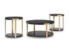 Reflect your cool, contemporary eye for design with this table set. Pairing a gleaming goldtone finish and black wood grain pattern, it crafts a luxe look for your living room. The lower shelves are well-suited for displaying your favorite decor, while casters on the coffee table offer added flexibility.