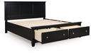 Timeless casual design. Made with hardwood solids, birch veneer and MDF substrate. Clean contemporary black painted finish. Round metal drawer knobs with a satin nickel color finish. Drawers feature French/English dovetail construction with metal ball-bearing side glides. Thick profiled tops, framed drawer fronts and traditional tapered feet. The storage drawers in the footboard offer extra deep space for storing larger bedroom essentials. Full roll slat foundation for mattress only. No foundation box spring required.
