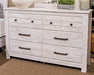 Looking to create a bedroom that feels airy and beautifully put together? This casually comfy dresser with mirror is your perfect solution. Its clean lines, whitewash finish and replicated pine grain exude a charming cottage-inspired feel that brightens your restful retreat. Spacious drawers with dark bronze-tone hardware stow away clothes and more. Now there’s a fresh take on country living we can get behind.