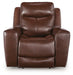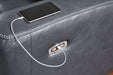 Prepare to be moved. This power recliner combines sleek modern design with all the soothing features you've been dreaming of. Wrapped in blue-hued leather and faux leather for affordable luxury, this highly contemporary piece with cozy scoop seating suits your relaxed vibe. Infinite reclining and headrest positions are yours at the touch of a button. It's the perfect choice for anyone who wants their comfort with a side of style.