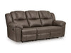 Ready to find your new favorite spot to unwind? This reclining sofa is designed for maximum indulgence, with plush, pillowy cushions that provide wonderful support. Wrapped in supple yet durable faux leather that’s easy to clean, it's just the ticket for movie nights and everyday life. And with one easy pull, you’re on your way to endless relaxation. Talk about the perfect blend of sink-in comfort and inviting contemporary style.