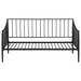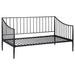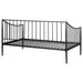 This stylish daybed offers a sleek and practical solution for guestrooms, living rooms, or compact spaces. Constructed from welded metal, it ensures lasting durability and stability. The powder-coated matte black finish enhances its modern, minimalist aesthetic while protecting against wear. Featuring a slatted metal platform, it provides reliable support for a twin mattress without the need for a box spring. Its streamlined design blends seamlessly into various settings, combining functionality with contemporary style.