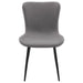 This dining chair combines sleek modern design with practical comfort. Upholstered in a grey linen-like fabric, the seat and backrest are crafted for easy care and long-lasting use. The contoured design offers ergonomic support, while the foam-padded seat ensures comfort during meals. Sturdy black powder-coated metal legs provide a minimalist aesthetic with dependable durability. Constructed from plywood, foam, fabric, and metal, this chair is a versatile and stylish addition to any dining space.