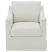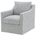 This swivel accent chair complements living room décor with its neutral fabric and streamlined silhouette. Perfect as lounge seating or an occasional chair, it offers a gentle, 360-degree swivel for relaxed conversation or quiet reading. Its plush seat and transitional flair enhance the comfort and style of your home, blending subtle elegance with everyday versatility.