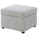 This versatile storage ottoman enriches your living space with stylish functionality. Upholstered in soft, neutral fabric, its hydraulic lift top reveals hidden storage perfect for stashing blankets, magazines, or personal essentials. Use as a footrest, extra seat, or accent piece. Designed to complement modern or traditional décor, it effortlessly enhances comfort and organization in any room.